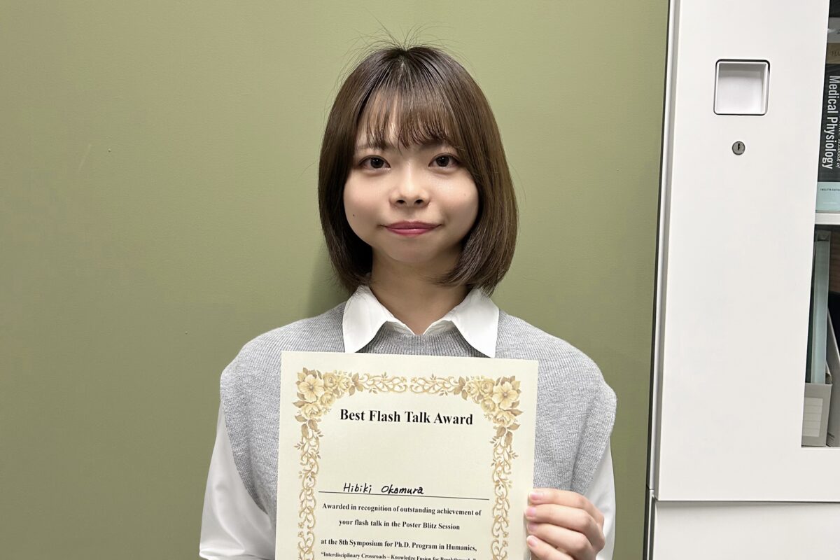 Hibiki presented at the 8th Symposium for Ph.D. Program in Humanics, “Interdisciplinary Crossroads – Knowledge Fusion for Breakthroughs” and received the Best Flash Talk Award (December 19th, 2025). Presentation title: Analyses of REM sleep modulatory system that depends on feeding …